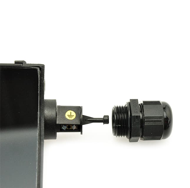 Jedno čelo svítidla (nebo obě čela v případě průchozího napájení) je osazeno vývodkou M20x1,5. Připojovací svorkovnice je přístupná po odšroubování vývodky, utěsněné „O“ kroužkem.